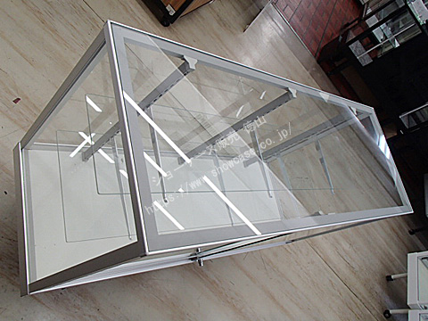 | 弊社工場で新品部材のみで組み立てをした未使用品のアウトレットケースです。 他社製品では丸い四本足が四角い形状なのが特徴です。 正面のガラス引戸にはプッシュロックが標準装備されています。 棚ガラスは高さ調整や段の追加が可能です。 |