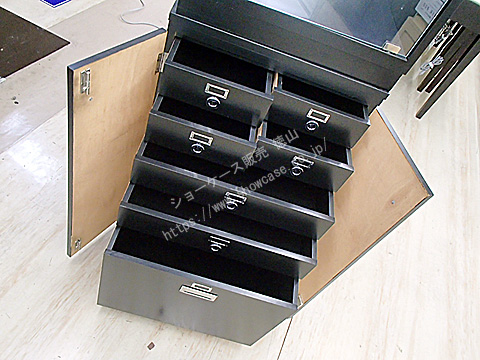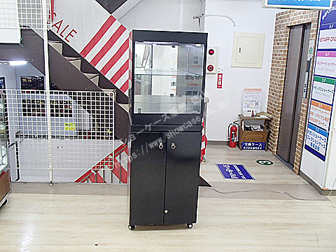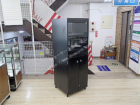 1台 参考上代価格 ¥330,000 木製タワーケース 宝飾ブランド ブラック 棚1枚 背面ミラー キャスター ロック 収納 引き出し付き ダウンライト ランプ1灯(保証なし) W 600 × D 600 × H 1715 (GH 560) ¥109,800