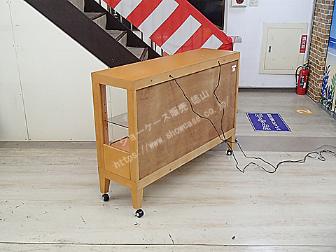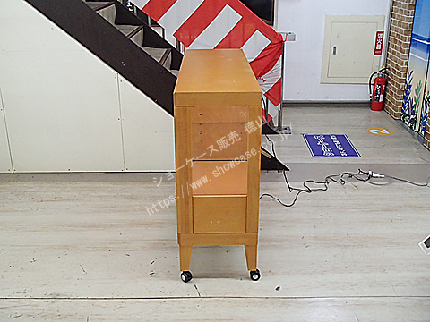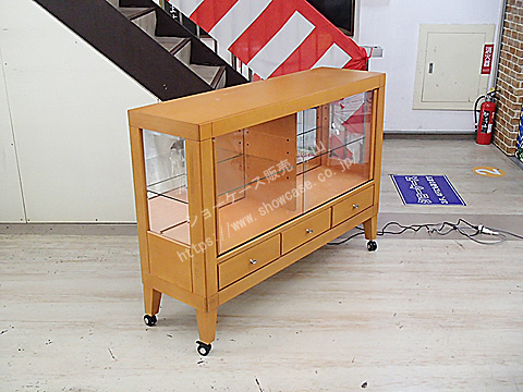 1台 参考上代価格 ¥296,000 国産 平ケース 木製 棚2枚 前引き戸 背面ミラー キャスター 引き出し付き ダウンライト ランプ2灯(保証なし) ※棚板追加不可 W 1350 × D 395 × H 980 (GH 440) ¥79,800