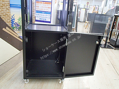 | 省スペースで設置可能なスチール製ポールケースのリサイクルです。 LEDテープライトが左右の縦方向に配線してありライトアップが可能です。 透明部分はガラスではなくアクリル製のため破損時に怪我をしづらく軽量なのが特長です。 腰部は片開き扉収納になっていて空き箱等を入れておくのに重宝します。 |