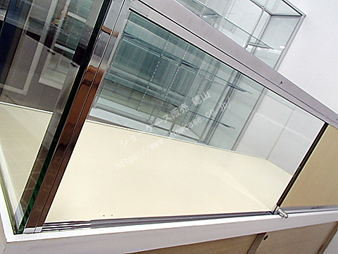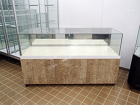 | ジュエリーやブランド品をディスプレイするのに適したカウンターケースです。 腰部は引き違い戸の収納ストッカーで大変便利です。 上部にフレームが無いため商品をより良く見せることができます。 背面のガラス引戸はミラー加工になっていてアイテムの裏側まで映し出してくれます。 |