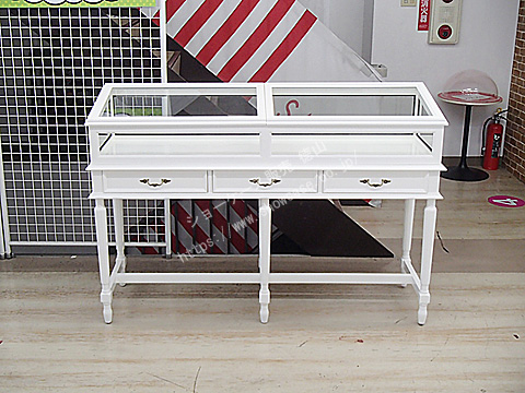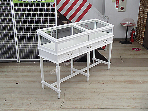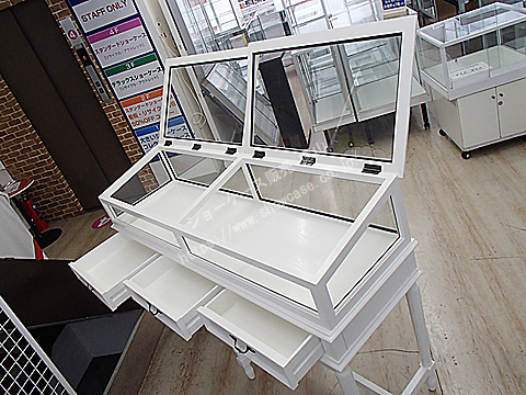 1台 参考上代価格 ¥420,000 ネコ足宝飾カウンターケース 宝飾ブランド 木製 ホワイト 引き出し付き 天蓋開閉式 W 1500 × D 465 × H 1030 (GH 160) ¥99,800(税込¥109,780)