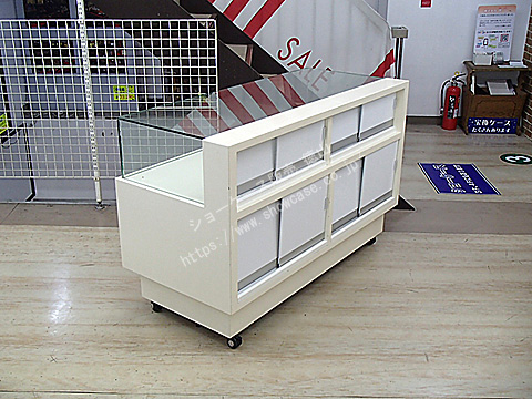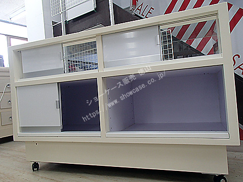3台T1S2 参考上代価格 ¥400,000 木製カウンターケース 宝飾ブランド ホワイト 後ろ引き戸 背面ボード キャスター 収納 W 1350 × D 600 × H 870 (GH 250) ¥104,800(税込¥115,280)