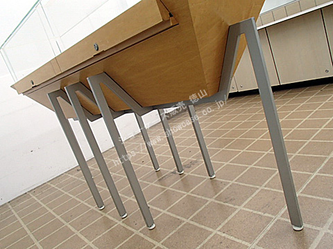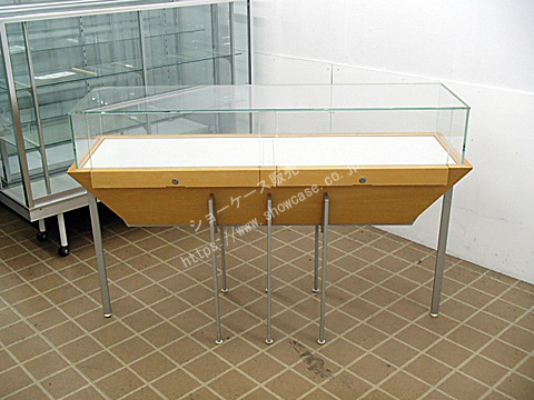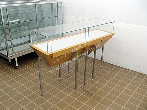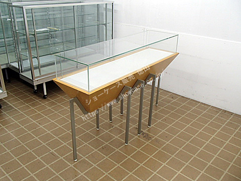 | オーダーメイドの木製ガラス芯出しカウンターケースのリサイクルです。 前後どちら向きでも兼用で使える便利な仕様になっています。 台形のような特殊形状の木台を8本のスチール足で支えているのが個性的なデザインと言えます。 鍵付きの芯出し開閉扉が左右2か所にあります。 |