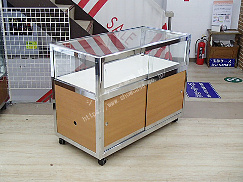 1台/ HOLD 260213sa 参考上代価格 ¥338,800 日本アルミ アルシャイン カウンターケース アルミ クローム 背面ガラス キャスター 収納 W 1200 × D 600 × H 930 (GH 254) ¥84,800(税込¥93,280)
