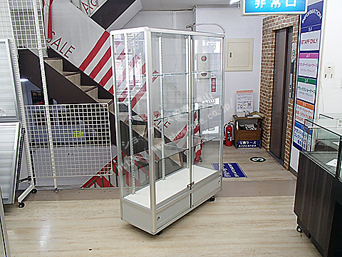 | 丸みを帯びたフレームが特徴の高級感あふれるショーケースです。 状態も比較的良好で自信をもってお勧めできるリサイクル商品です。 腰部分は引き戸収納になっており、空き箱などのストッカーとして便利です。 棚ガラスはレイアウトに合わせてピッチ調整が可能です。 |