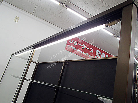 | 標準タイプの中でも流通数が少ない貴重なブロンズカラーのリサイクルケースです。 ガラス引戸にはプッシュロックも標準装備してあり、店舗での運用におすすめの1台です。 正面の天枠にスリムランプ蛍光灯が横方向に1灯取付してあり、ライトアップが可能です。 背面は後ろの壁紙等が透けないよう黒いボード仕様になっています。 |