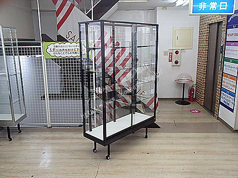 | 人気カラーの黒フレームの標準型ショーケースのリサイクルです。 追加オプションで引き戸にハイセキュリティロックを取付することができます。 棚受けが廃番のため棚の段数を増やすことが出来ません。 棚の位置はアイテムに合わせて高さ調整が可能です。 |