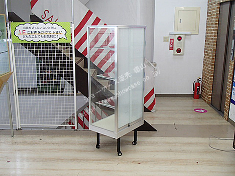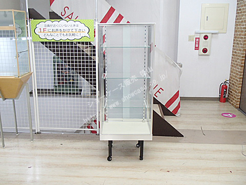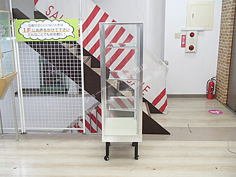 | コンパクトなサイズが特徴のリサイクルケースです。 内部の棚ガラスは追加で増やすことは出来ませんが、高さ調整で幅広いレイアウトが可能です。 商品の出し入れは背中側のガラス引戸から行います。 このガラス引戸にはドット柄のガラスフィルムが貼ってあり、壁の汚れ等を隠す効果もあります。 |