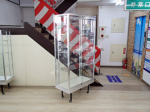 | クセのないフォルムで様々なシチュエーションに溶け込む、ロングセラー商品です。 シルバーのアルミフレームのガラスショーケースのリサイクル品です。 防犯対策に欠かせないハイセキュリティロックを追加で取付することも可能です。 展示部分のガラス棚は可動式で、お好みのピッチで自由に調整できます。 |