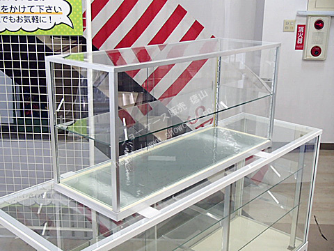 | 軽くて丈夫なアルミフレーム製の卓上ショーケースのリサイクル品です。 平ケースやカウンターケースの上に置いて収納力をアップするのに最適なショーケースです。 棚ガラスは1枚付属しておりますが、別料金で追加することも可能です。 下段の地板も型ガラスと呼ばれる模様が入ったガラスが入っています。 |